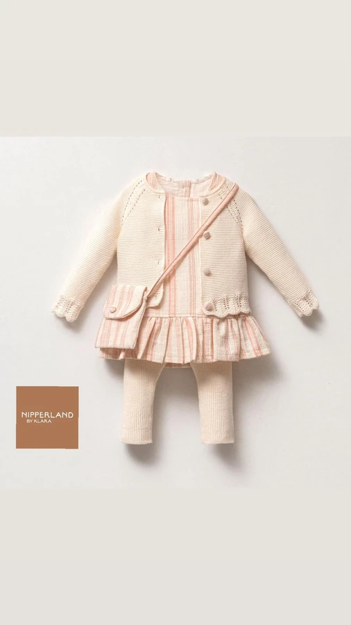 סט מהמם לתינוקת כולל תיק קטן בצבע קרם וורוד