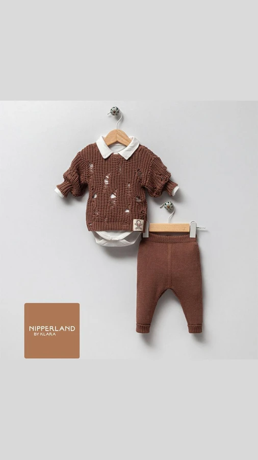 סט 3 חלקים NIPPERLAND בצבע חום ועליונית לבנה