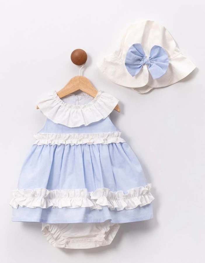 שמלה מעלפת בכחול בהיר ולבן מבית CUMINO